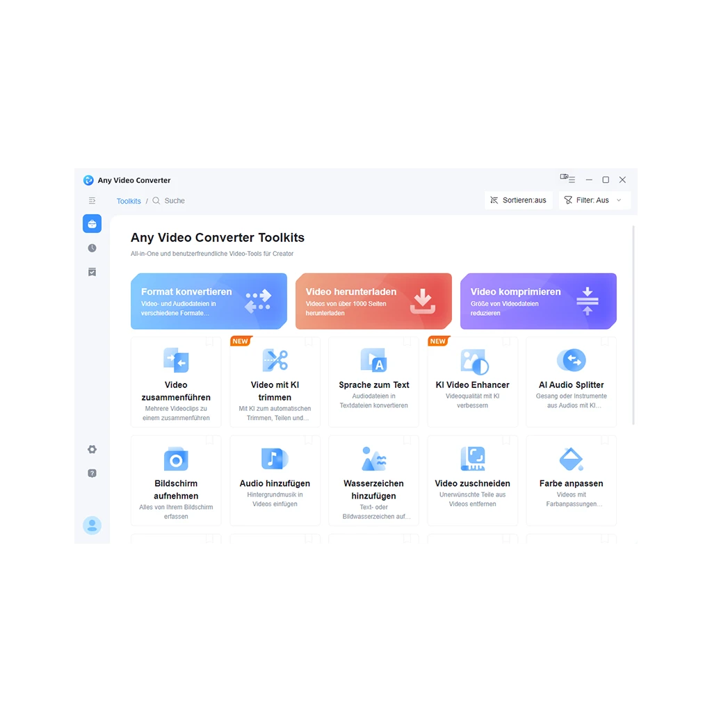 Any Video Converter ist eine professionelle All‑in‑One‑Lösung zum Konvertieren, Bearbeiten, Komprimieren und Herunterladen von Videos mit modernen KI‑Funktionen – ideal für anspruchsvolle private und professionelle Workflows.