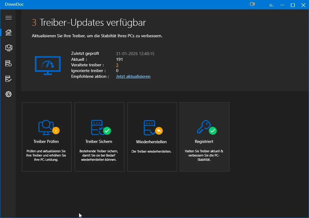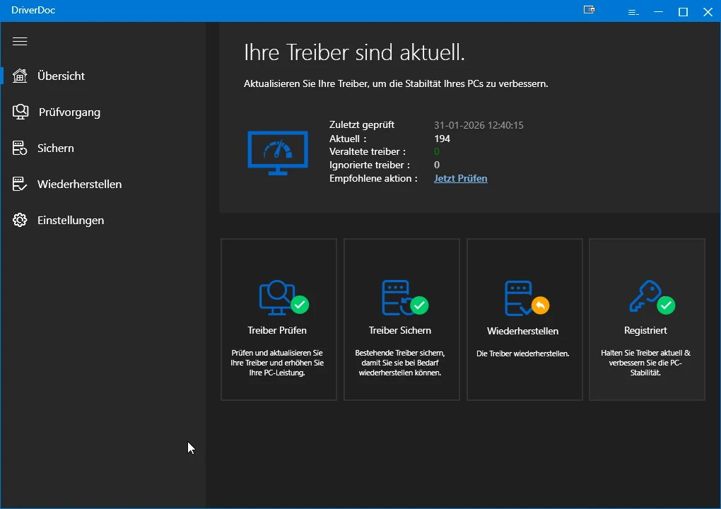 DriverDoc ist eine leistungsstarke Software zur automatischen Aktualisierung von Windows-Treibern. Sie scannt Ihr System, findet fehlende oder veraltete Treiber und installiert sie sicher aus einer Datenbank mit über 16 Millionen Einträgen – einfach und frustfrei.