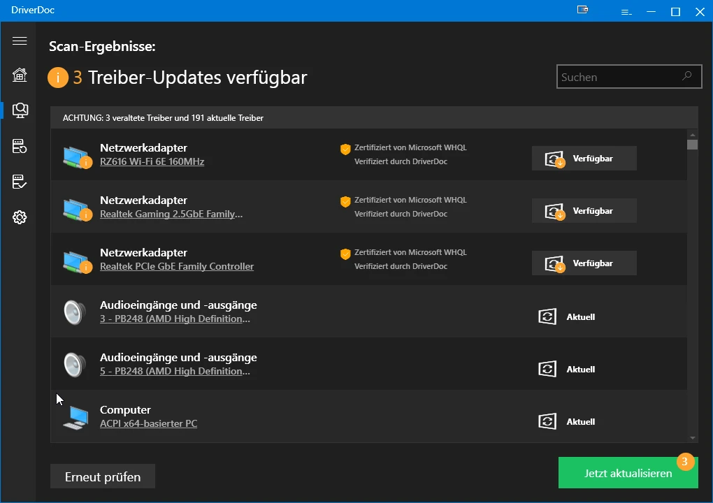 One-Click Update: Scannt Hardware, findet und installiert Treiber automatisch aus 16 Mio. Datenbank – sicher und fehlerfrei.