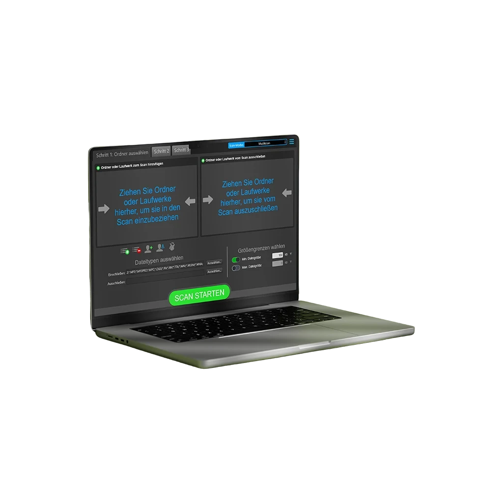 Wählen Sie einfach eine der Scanarten aus und die zu scannenden Ordner. Den Rest erledigt der Easy Duplicate Finder für Sie!
