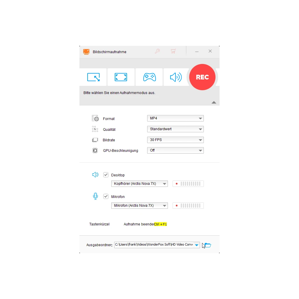 Dazu kommt noch die Option nur den Computerton und Ihr Mikrofon als reines Audio aufzunehmen.
