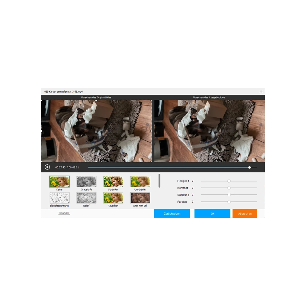 Verschönen Sie Ihre Videos mit vielen Effekte und Filtern! Einfach auswählen und fertig!