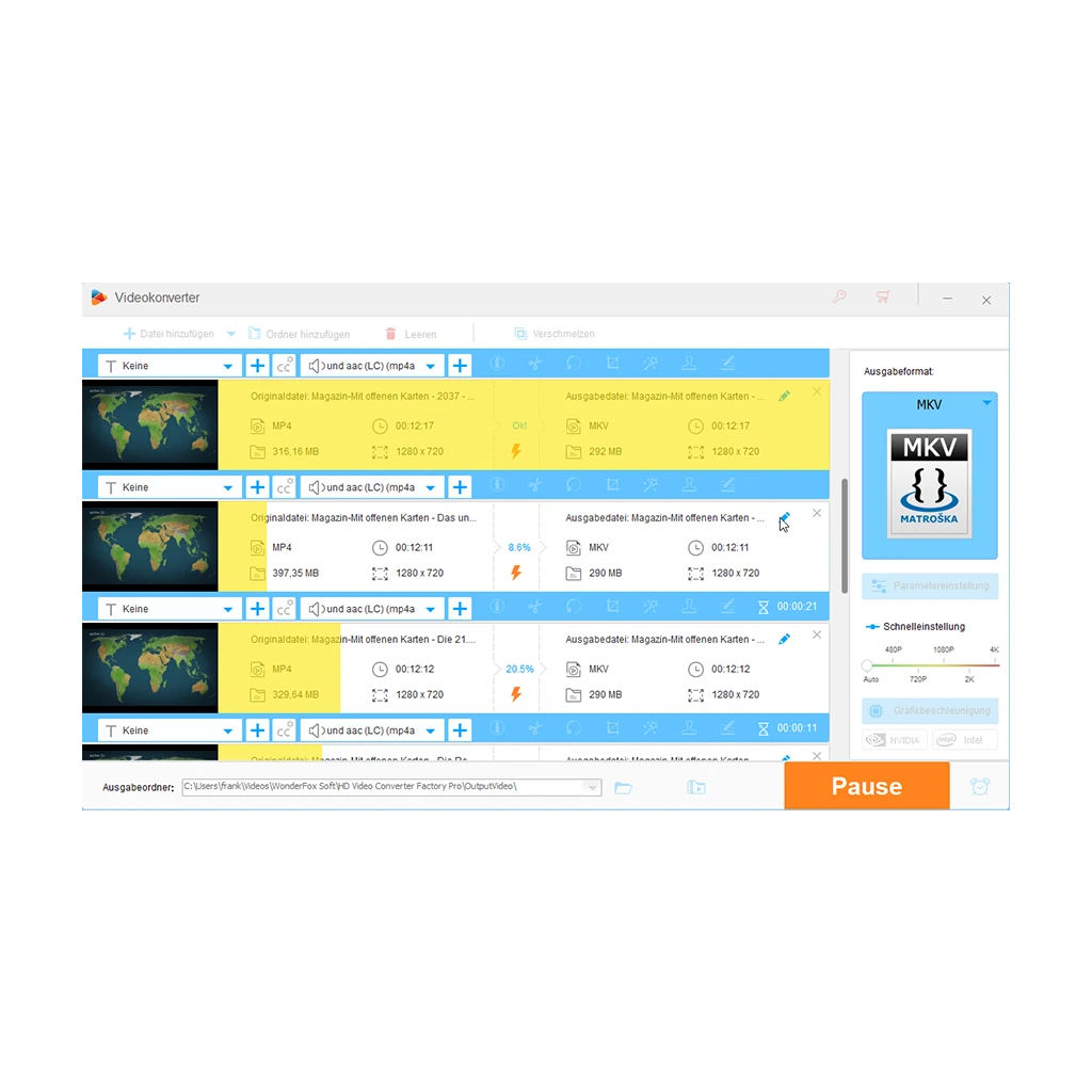 Die Wonderfox HD Video Converter Factory Pro ist das Schweizer Messer für alles rund ums Thema Video! Konvertieren, Download, Aufnahme, Bearbeiten, Komprimieren und noch viel mehr! Alles kein Problem für die Video Converter Factory! Natürlich GPU-beschleunigt und mit Stapelverarbeitung.